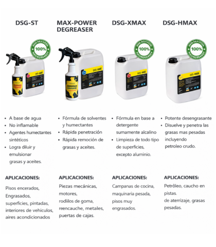 Contamos con desengrasantes a base de agua, alcalinos y de alto poder, diseñados para aplicaciones ligeras, medias y pesadas, garantizando seguridad, eficacia y compatibilidad con distintos materiales.